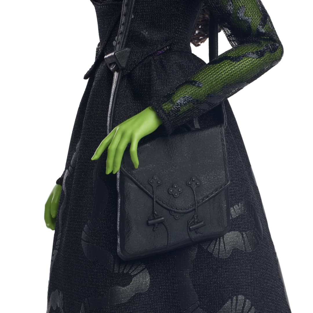 There’s no one quite like Elphaba! Inspired by Universal Pictures’ Wicked, the Elphaba fashion doll captures the heart of sisterhood from the movie. Dressed in her removable true-to-movie fashion, school bag, and signature hat, Elphaba can strike dynamic poses with flexibility at the torso, elbows, wrists, and knees. Elphaba also features her iconic look with true-to-movie details, like her long, braided hair and green skin. Fans will want to collect all the dolls from the land of Oz! Each sold separately, subject to availability. Dolls cannot stand alone. Colors and decorations may vary.