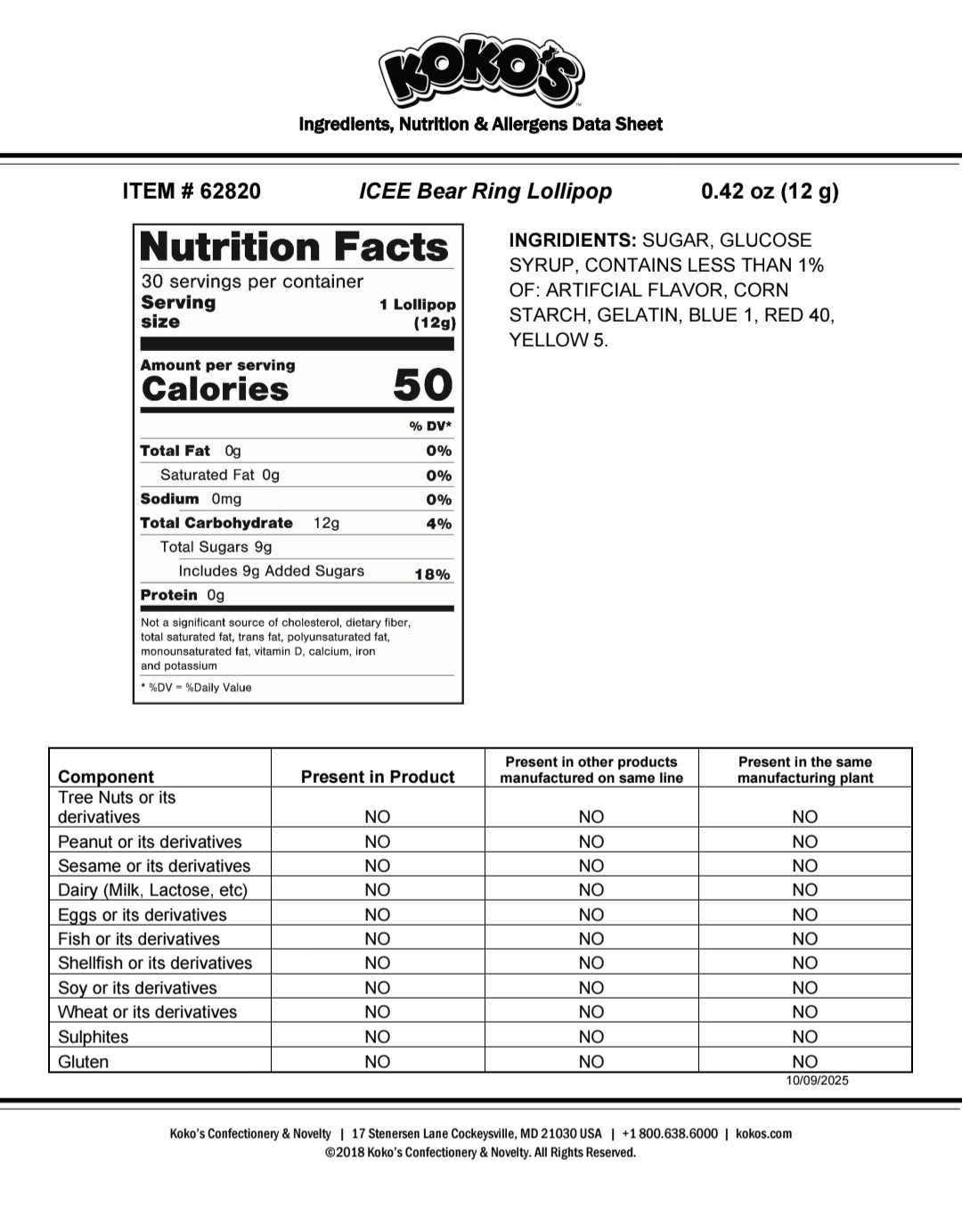 The ICEE Bear Ring Lollipop turns your favorite frozen treat into a candy you can wear! Shaped just like the iconic ICEE Bear’s head, this pop is as fun to show off as it is to eat. Each ring holds a bold, fruity lollipop that’s bursting with classic ICEE flavor – sweet, icy, and oh-so-cool.