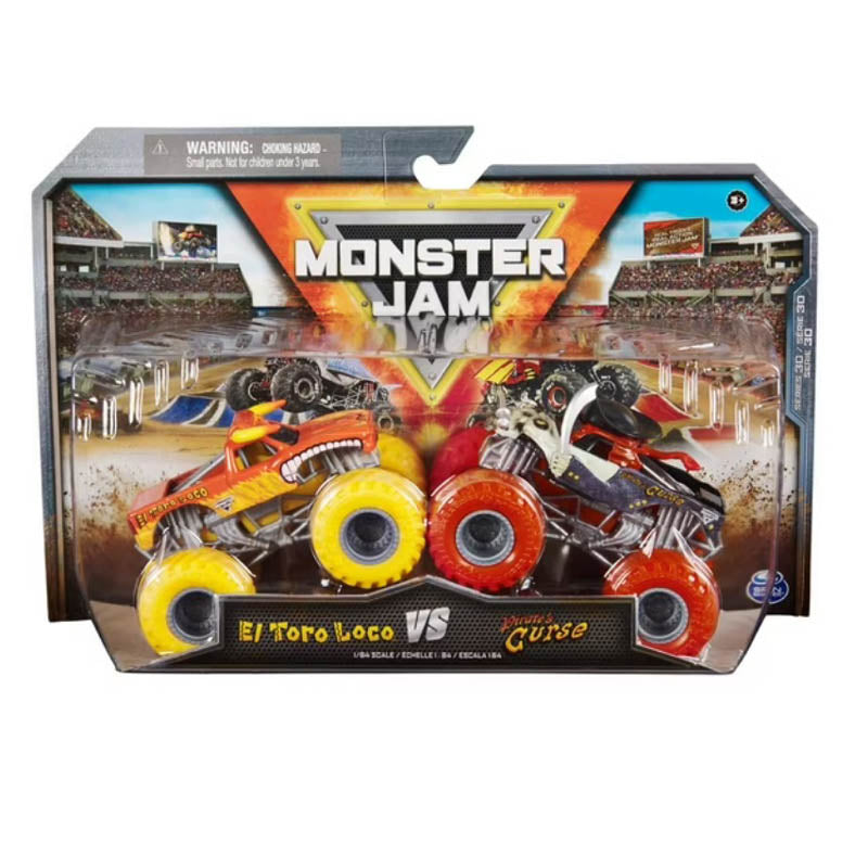 HEAD-TO-HEAD ACTION: Put on an awesome Monster Jam show with the 2-Pack! Each set comes with 2 iconic Monster Jam monster trucks, including Grave Digger vs. Higher Education, Bulldozer vs. Racing Stripes and more!