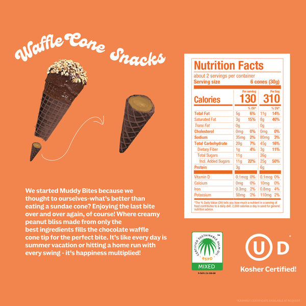 Muddy Bites : Peanut Butter Chocolate Waffle Cone 2.33oz [BB 06/05/2026] (Imported from USA)