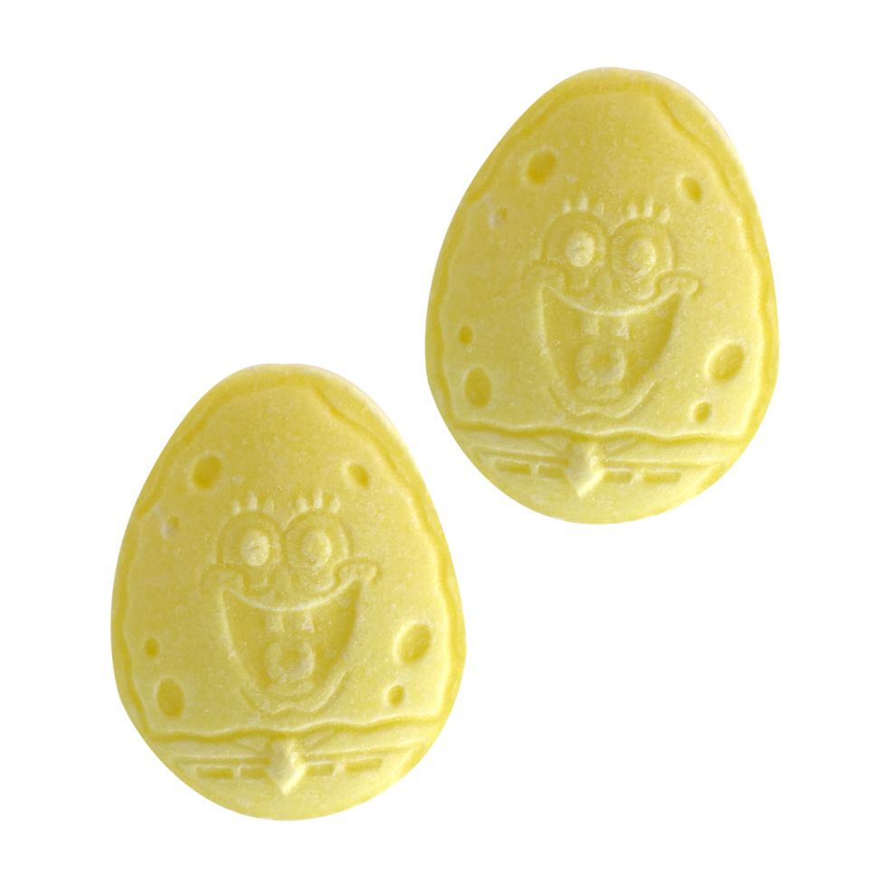 Easter at Bikini Bottom is eggstra fun! This egg-shaped tin is filled with 1.2 ounces of sour strawberry SpongeBob shaped candy