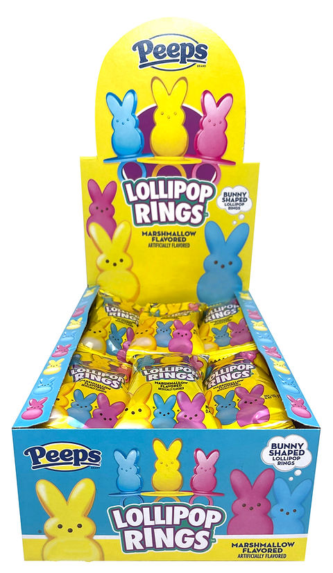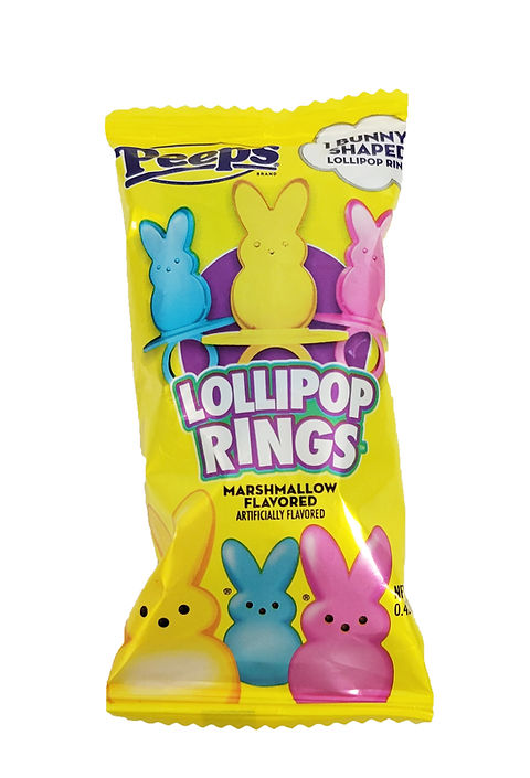 The PEEPS® Lollipop Ring collection comes with marshmallow flavored lollipops.