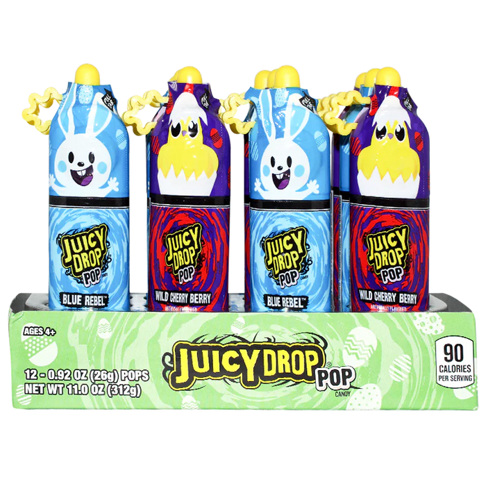 Get ready for a flavour explosion with Topps Easter Juicy Drop Pops! With a Blue Rebel and Wild Cherry Berry flavour, these Juicy Drop Squeeze candies will have your taste buds dancing. Perfect for adding some excitement to your Easter basket.