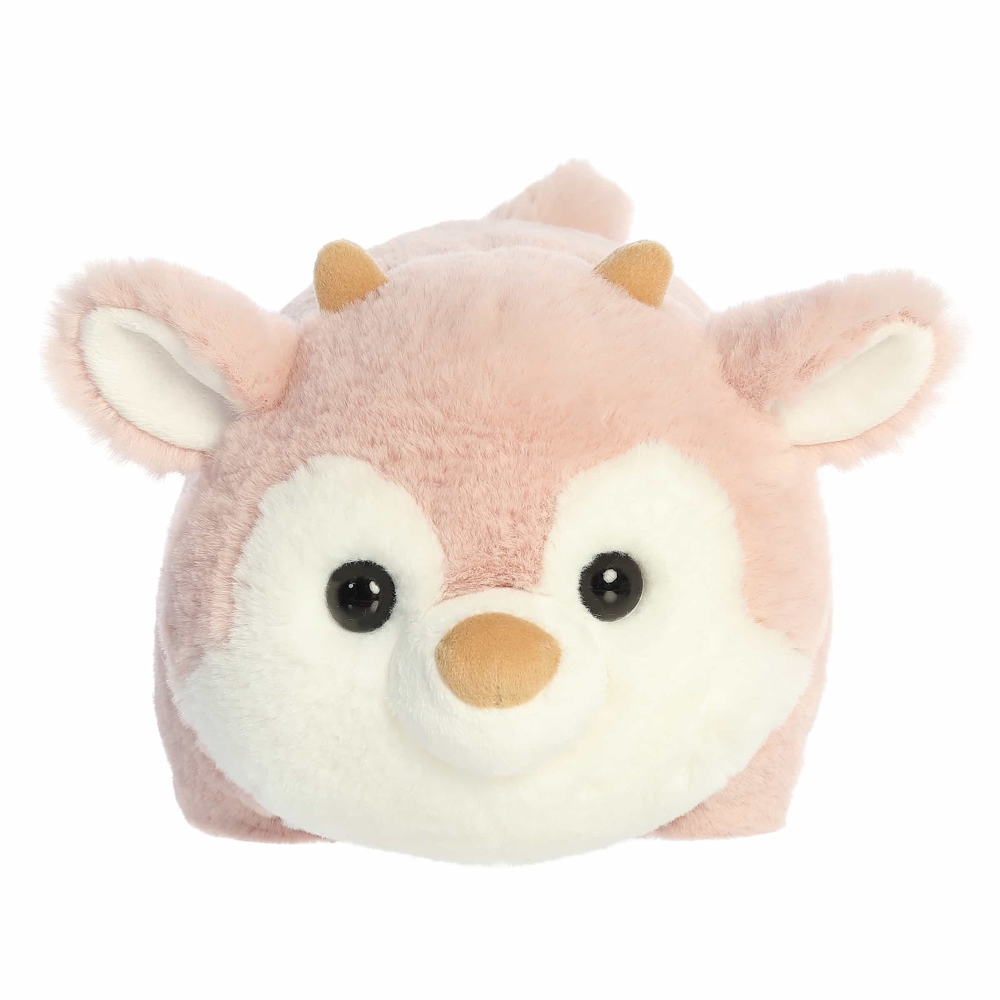 - This adorable pink Reindeer plush is designed to be similar to the shape of a potato (spud)