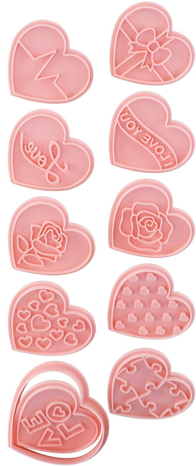 Valentine's Day Themed Dough/Cookie Cutters & Stamps - Set of 10