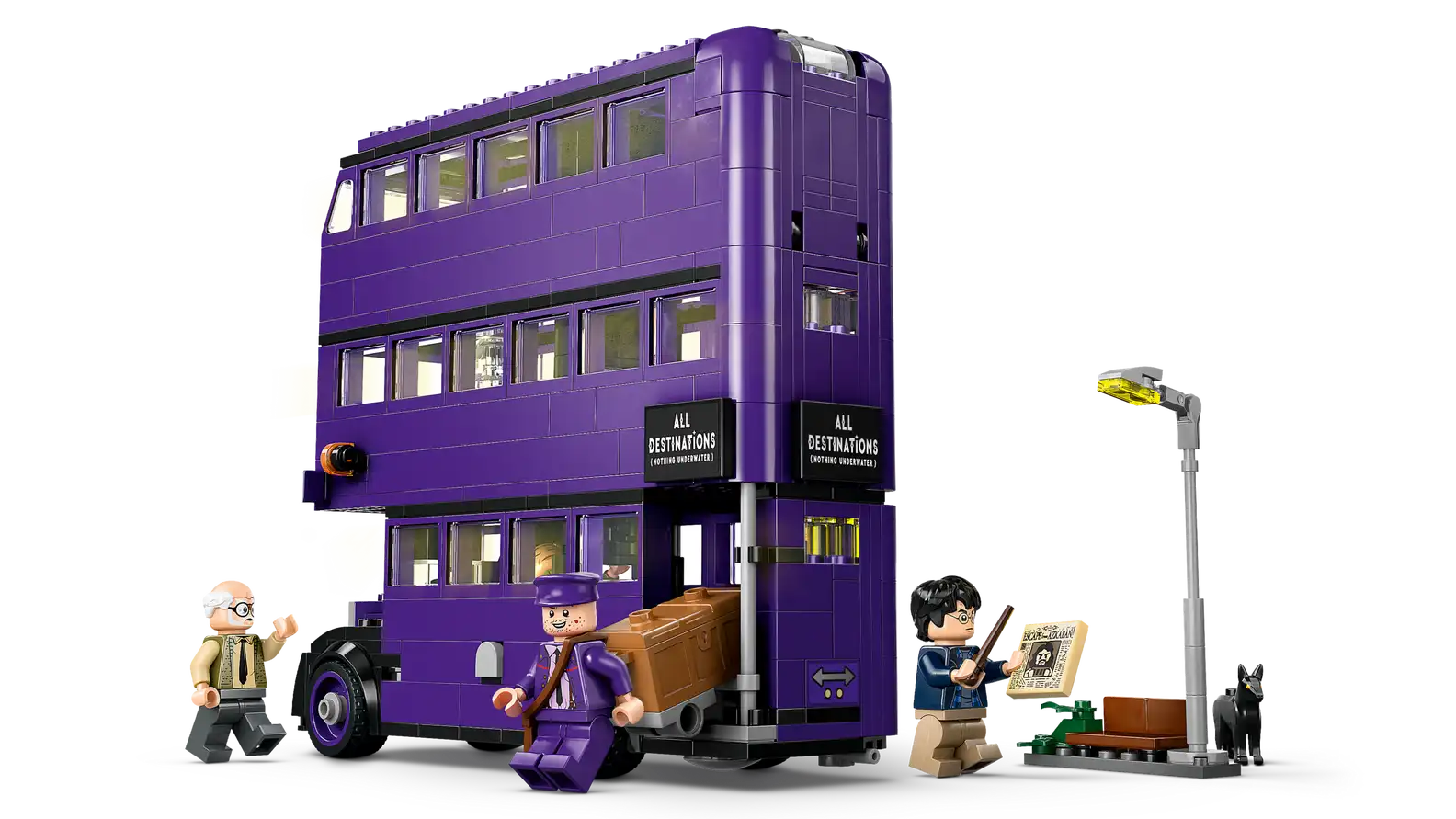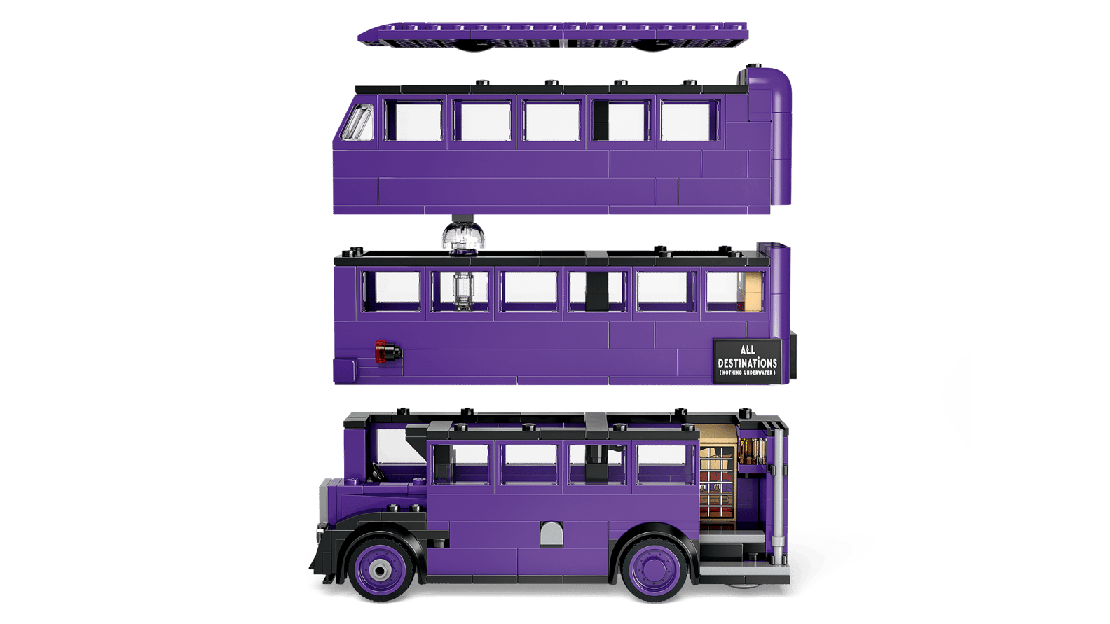 - The most detailed LEGO® brick model of the Knight Bus™ – The upper levels of the bus can be detached for easy access to the interior, which features moving beds and a swinging chandelier