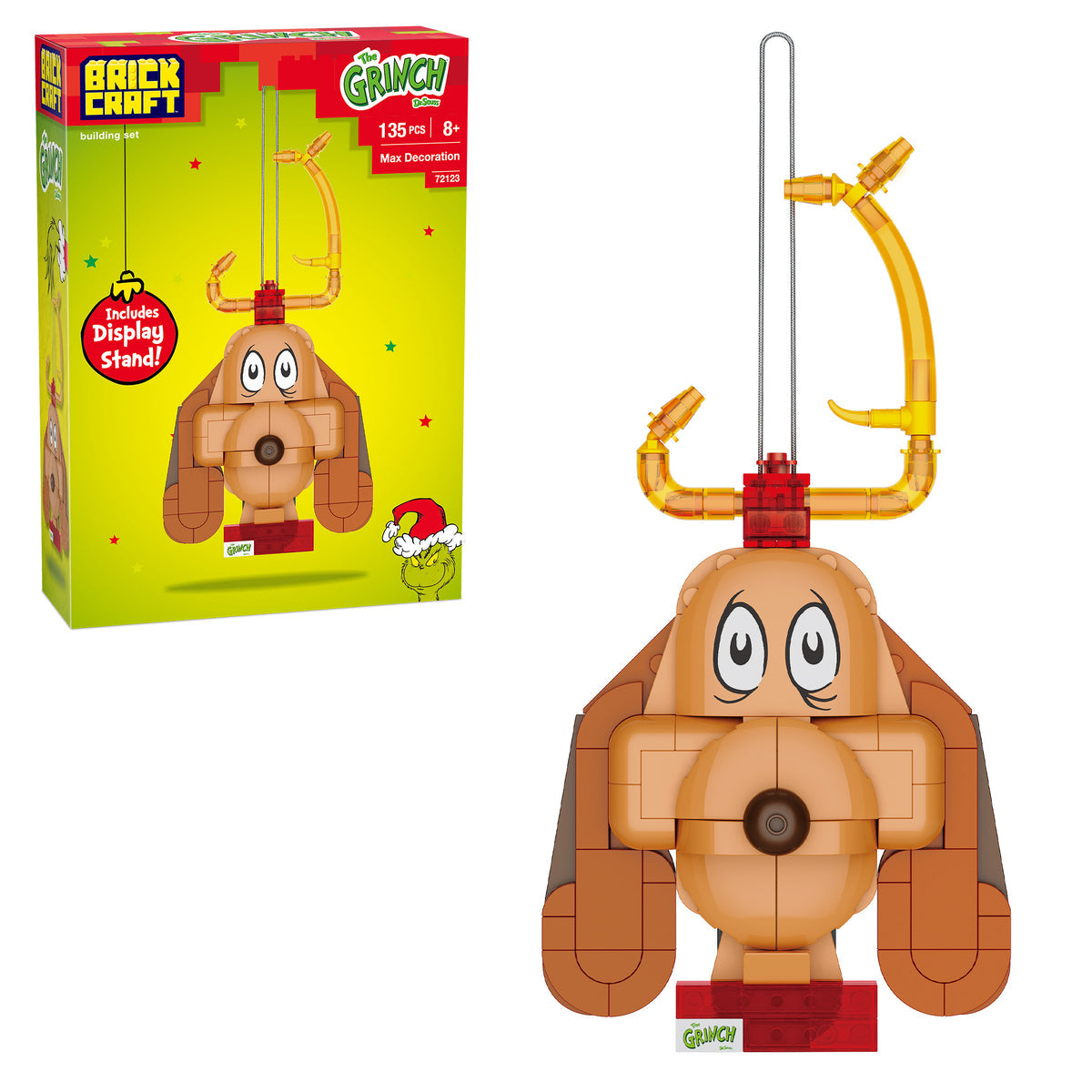 Infuse some Whoville charm into your holiday decor with the Officially Licensed Brickcraft Grinch Max the Dog Decoration. This delightful building kit lets you build The Grinch’s loyal companion Max, complete with his iconic antler. Whether you hang it with the included festive silver string or display it using the optional brick-built table stand, Max is sure to bring some warmth and cheer to any space. This set makes the perfect holiday gift for Grinch fans of all ages!