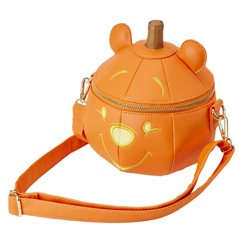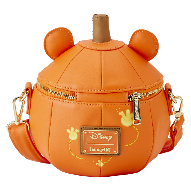 Oh, bother! This silly ol’ bear has been transformed into a pumpkin. Taking a three-dimensional form, the Loungefly Winnie the Pooh Pumpkin Crossbody Bag gives shape to a festive fall tradition. On the front, Winnie the Pooh’s face is carved with charming glow-in-the-dark details. His ears appear next to the pumpkin’s stem above while embroidered honeybees appear on the back. An essential for any autumn wardrobe, this accessory will keep your belongings safe on trips to the pumpkin patch and beyond.